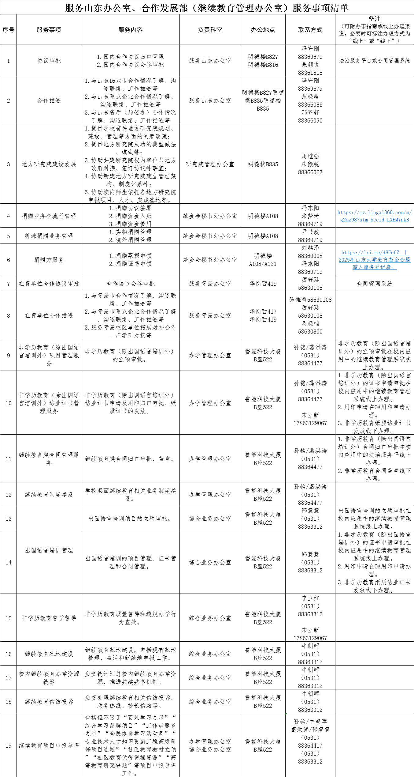 服务山东办公室、合作发展部(继续教育管理办公室)服务事项清单